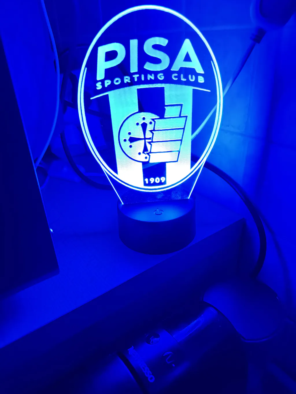 Porta la tua fede calcistica sempre con te con la nostra lampada a led personalizzata Pisa, un must-have per ogni vero tifoso! Realizzata con materiali di alta qualità e dotata di luce a led multicolore a basso consumo, questa lampada è perfetta per decorare la tua stanza con stile e passione.
