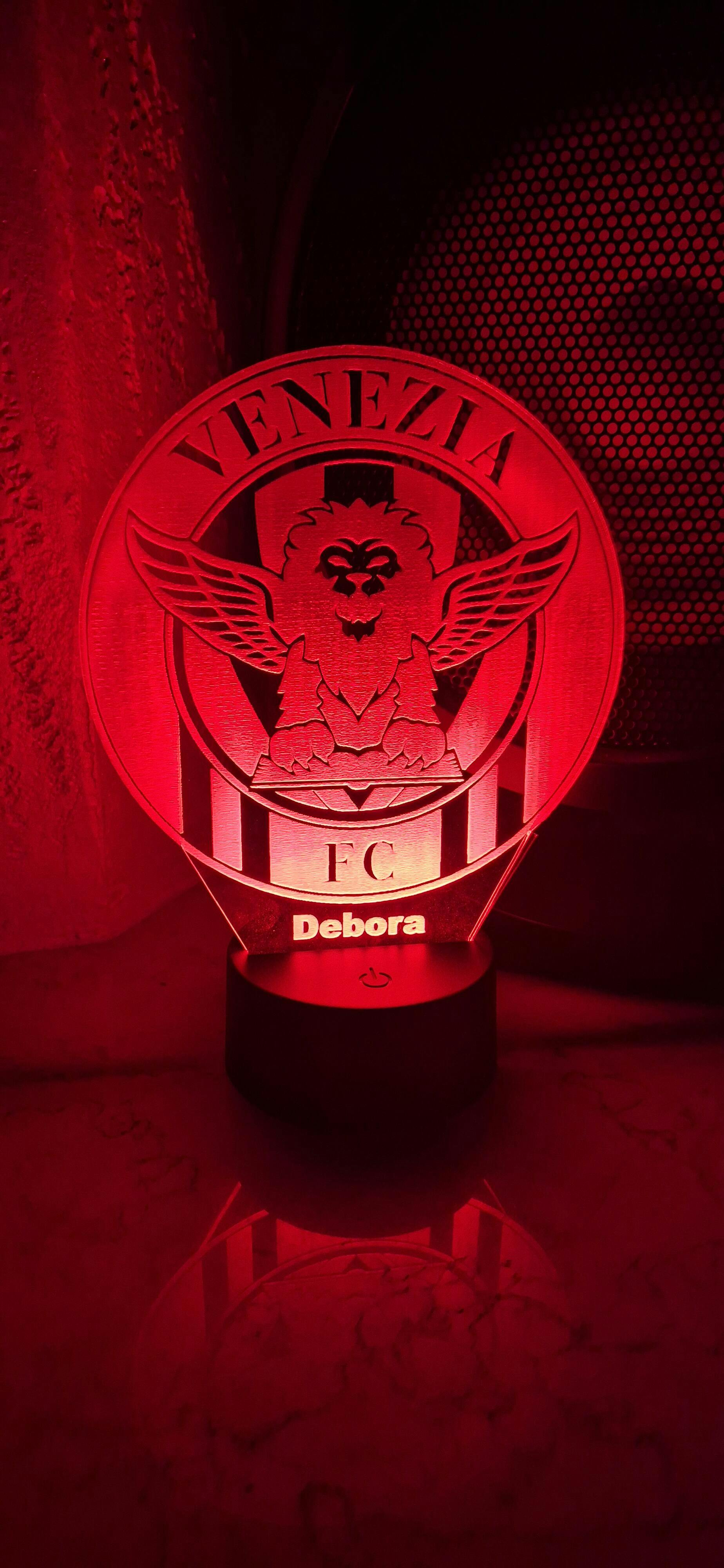 Porta la tua fede calcistica sempre con te con la nostra lampada a led personalizzata Venezia, un must-have per ogni vero tifoso! Realizzata con materiali di alta qualità e dotata di luce a led multicolore a basso consumo, questa lampada è perfetta per decorare la tua stanza con stile e passione.